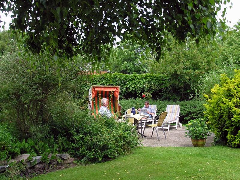 Im geschützten Garten (mit Strandkörben und Grillecke) hinter dem Haus und unserem „Backhaus“ können Sie die „Seele baumeln“ lassen. Zum Strand ist es nicht weit – aus den Wohnungen Nr. 10 und 11 können Sie die Ostsee schon sehen.